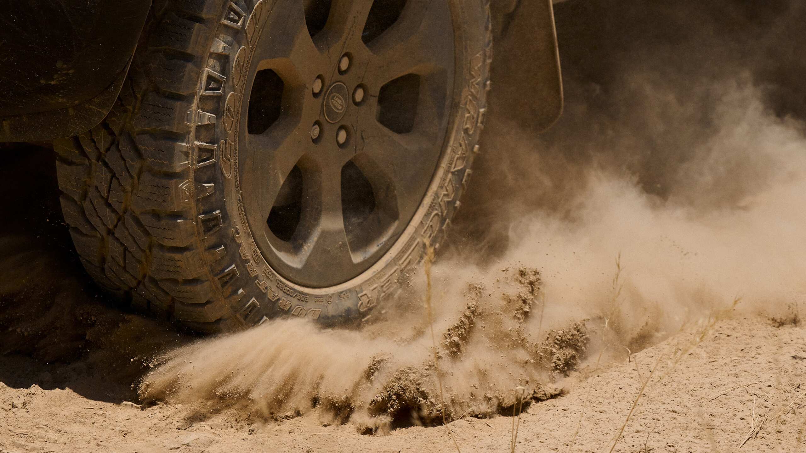 Sand driving demands smooth acceleration to avoid the tyres sinking into the soft surface. Sand Mode adjusts throttle response to support this and adjusts the Dynamic Stability Control of the vehicle to prevent unwanted vehicle interventions, facilitating exhilarating drives on desert dunes. When off-road on sand, consider lowering your tyre pressure (20psi / 1.4Bar minimum) to create a greater surface area. If you need to park in sand, try to do so on a downward slope. This will help you when you pull away and reduce the risk of getting stuck.
